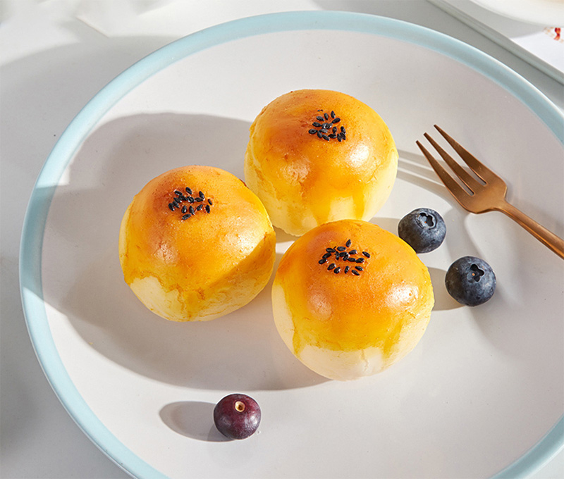 蛋黃酥月餅源于臺式傳統糕點,選用上等紅豆研磨紅豆沙加上人工挑選咸蛋黃,皮薄餡滿、綿而不干、口感綿沙咸香、不甜不膩、老少皆宜,香醇濃郁的酥皮香味,加入了日式雪媚娘的Q心餡,輕輕一咬,拉絲、冰糯、彈牙,一口咬下四重味蕾享受。